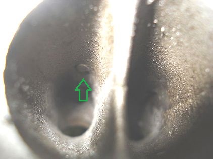 排気側バルブガイド手前に意味ありげな丘を発見! (挿絵 赤矢印)