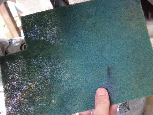 ちなみに目詰まりしにくく、フィット性に優れた スポンジ研磨材の方がサンドペーパーより作業しやすい。