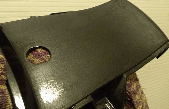 んで結局全体を塗装することにした中央シートカバーを耐水2000番をパッドに巻いてなでてみたが写真の通り、表面には細かな凹凸が多数存在しているのが分かる。