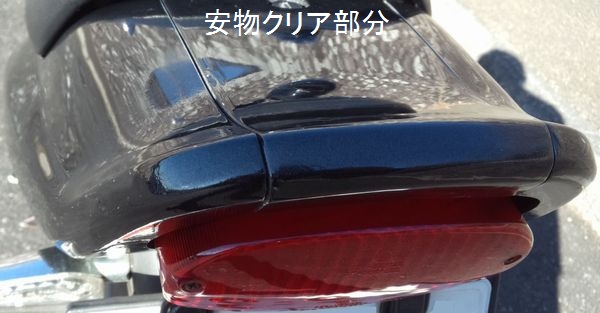 左右シートカバー、純正はウレタン塗料だろうけど艶に遜色ないのは写真の通り。 クリア層の厚みが放つ美しさでは見劣りするかな。薄塗りを繰り返せば安物でも十分な厚みを出せただろうが…、そこまでこだわる塗装なら良いウレタンを使うべきだな。