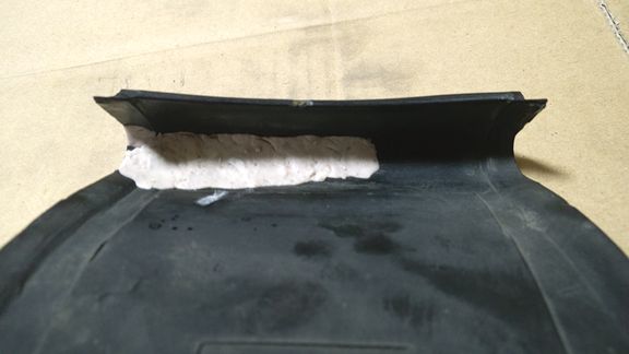 この部分は中央シートカバーと重なる所だから内部にパテを厚盛りすると干渉する。 後からドリルで削るの大変でした。