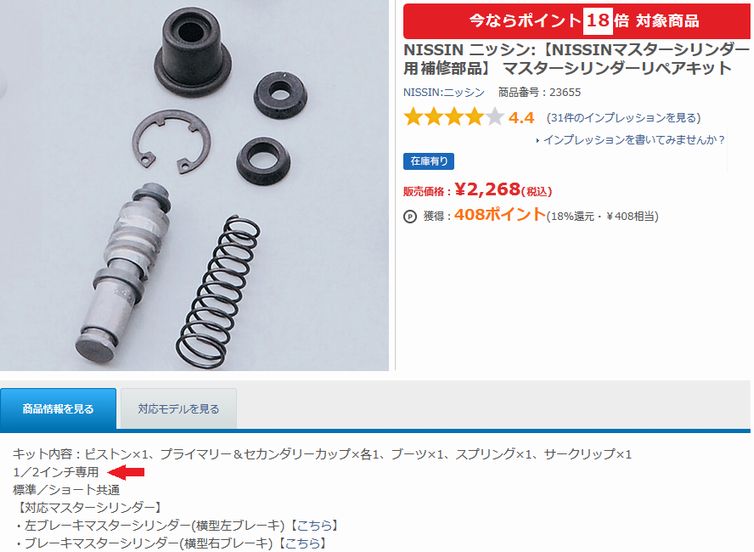あくまで「デイトナ製NISSINマスター用、純正NISSINマスターには利用できない」、とあるが径は1/2インチなので使えそうな気がする。