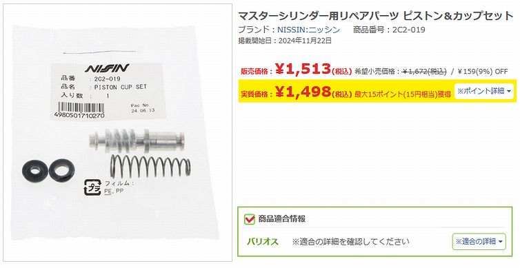 どうやら滅多に劣化しない部品のようだけど個人売買で手に入れたマスターやバイクはチェック。