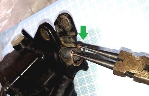 加工した先細ペンチで外してますが通常はスナップリングプライヤーを使います。