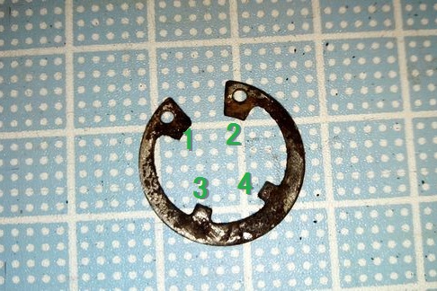 ちなみにこの止め輪は出っ張った4点で中の部品を押さえるようになっている。 ホームセンターではなかなか売っていないタイプの止め輪だ。