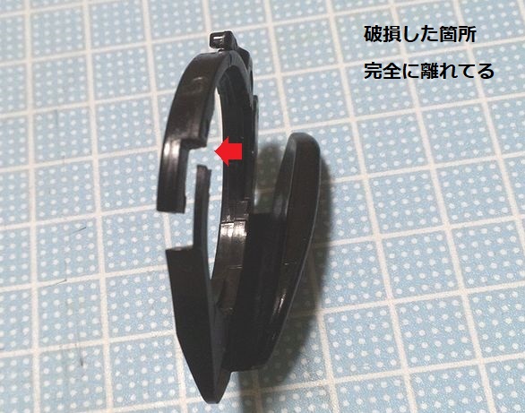 矢印の所。 本来はくっ付いているところが千切れて完全に切れて離れてしまった。