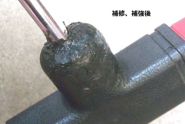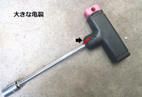 ハンドルが樹脂製のソケットレンチ、大きな亀裂を埋める。