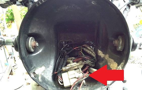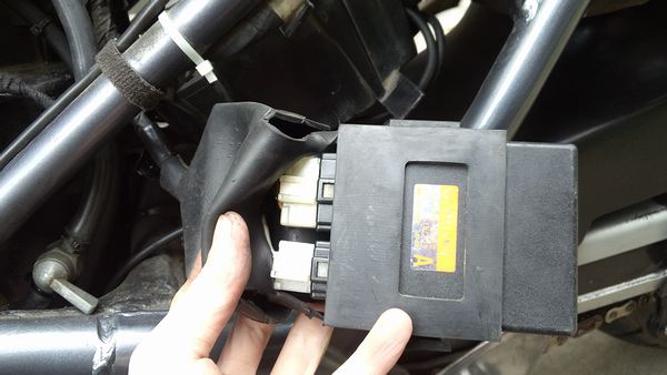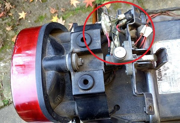 一番大きな6pinコネクタのW線(白)、BR線(茶)はイグニッション回路の線だから重要。端子は磨いておこう。