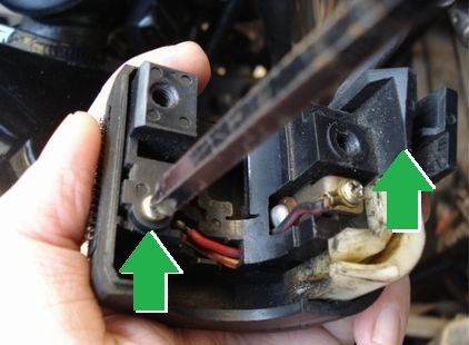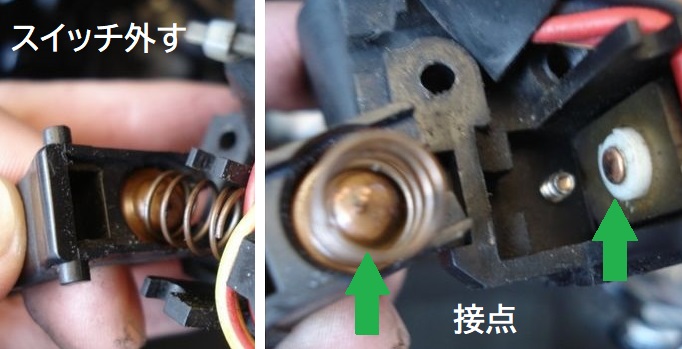 始動性に関わる所。上の接点は汚れにくいが、スイッチの接点が少し汚れやすい。