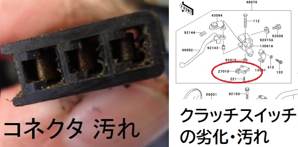 「ギアNなのになぜかセル回んない、クラッチ握りだすと回る」なんて場合は内部の接点が擦り減ってると思う。