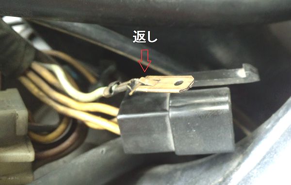 コネクタに戻すときにはまた"返し"を出して端子をコネクターに押し込めばOK。