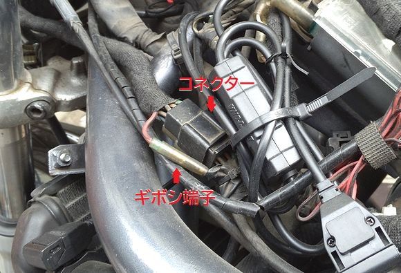 コネクタは全部で3つくらいあったかな。奥にラジエーターファンのコネクタが隠れてます。