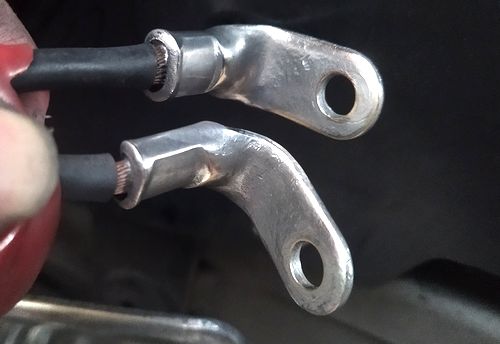 バッテリー端子もきれいに。 コードを引っ張り出してやや粗目から軽く研磨し、スプレー。