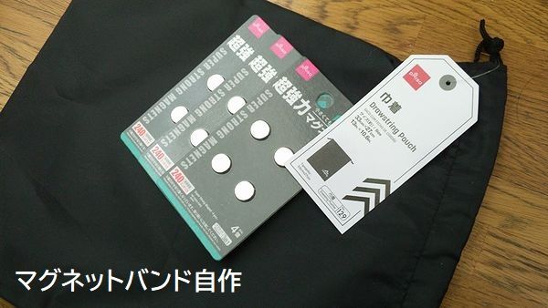 さて、私は当初の予定通り、ナイロンの巾着でカバーを作り、磁石をしまい込んで完成!
