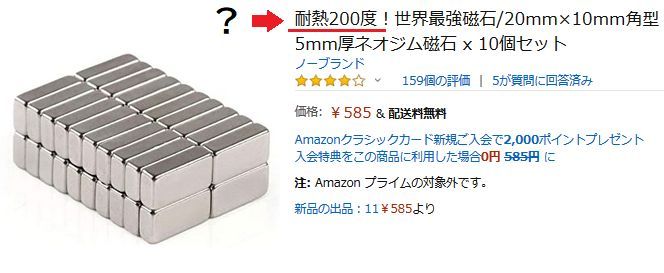 心配なら耐熱性のあるネオジム磁石を。このとき「耐熱 X℃」の表示が何を意味するのかに注意。