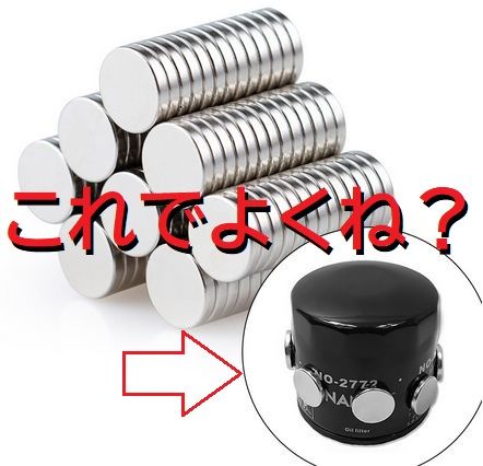 オイルフィルターにたった数百円の磁石を貼るだけのカスタム、