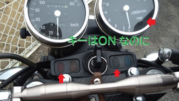 どうやらイグニッションスイッチの接触不良で電気が流れてない。