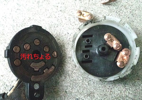 ここが接点。けっこう汚れてる。これが接触不良の原因。