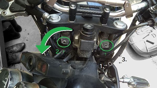 3. ヘッドライトケースを固定する左右のブラケットのボルトを六角4mmで外す。