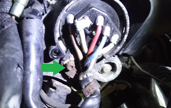 このスイッチはイグニッションコイルの一次コイルと直列に繋がっているので余計な抵抗があるとプラグのスパークも弱まる。つまり始動性や走りにも影響する。