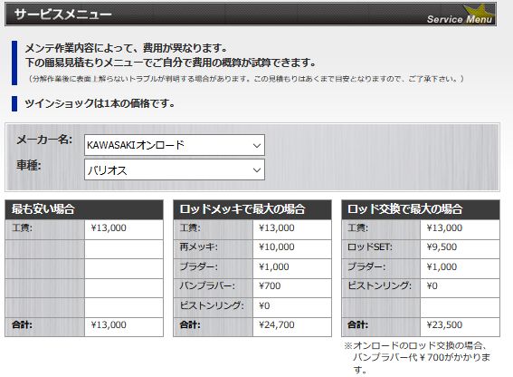 調べるとババナショックスというショップで費用が見積もれた。1.3万~2万円台か、思ったより安いな。