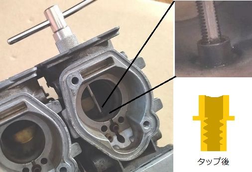 ニードルジェットにM3タップでネジ山を作る。下まで掘りすぎない。1cmほど。