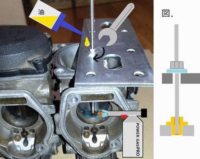 ニードルジェット付近をバーナーで炙ってから潤滑したナットを締めていくと―、