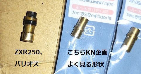 KAWASAKIのパーツリストを見てもこの形状のニードルジェットは他に無さそう。このキャブのメーカーであるケーヒンからもこの形状のものは出ていない、