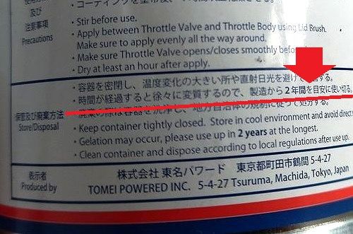 スロットルコートにまさかの 使用期限。 製造から2年をめどに使い切れと。