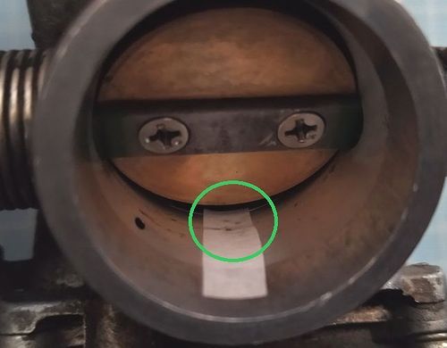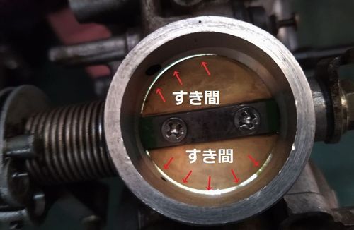 ↓ 乾燥後、貼り付いたスロットルバルブを開けてマスキングテープを剥がしました。