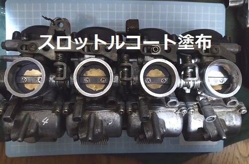 キャブにある穴はスロットルコートで塞いでしまわないようマスキング。