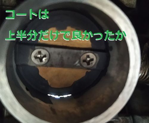 キャブの場合、スロットルバルブの下半分はスムーズに空気が流れないとスローから混合気を引っ張ってこれないから。