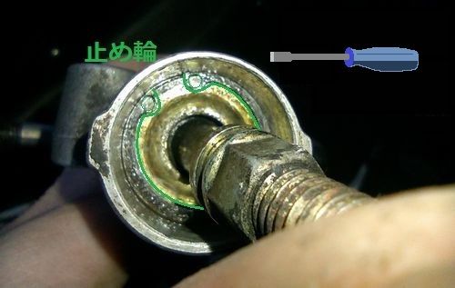 ここが汚いままだと止め輪をはめるのに苦戦する。
