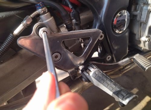 フットレストステーのボルト、6mmの六角レンチで外す。4箇所。