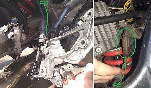 フットレストステーの裏にはブレーキランプのスイッチが固定されている。