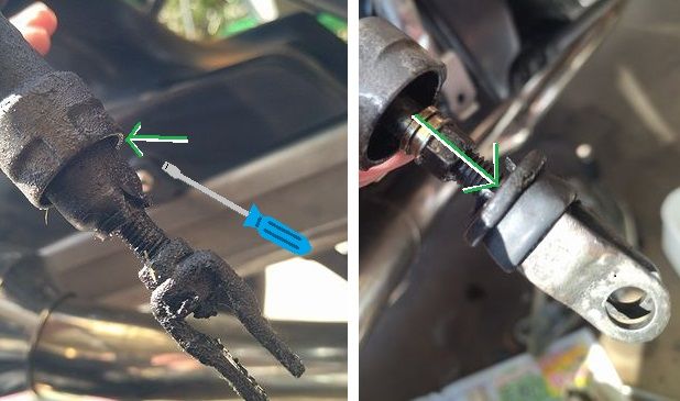 ダストシール (ブーツ) は小さめのマイナスドライバーで奥をこじれば外せます。下に詰めて置いておこう。