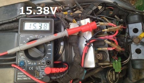 『15.38V』 (昇圧前12.15V)。