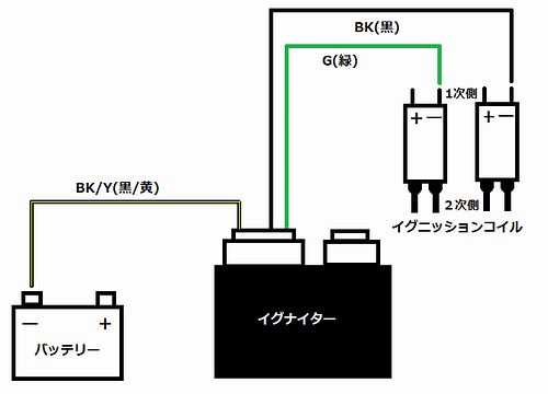 燃焼に関わる重要箇所(バッテリーとIGコイル)を直通とし、無駄を省く。