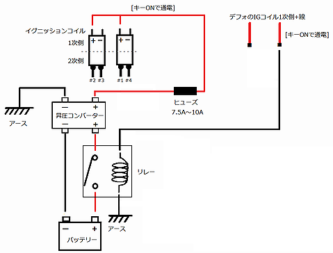 (※.回路が正常なら純正IGコイルは十分に飽和(パワーMAX)に達するはず。昇圧で余分に電流を押し込んでも熱になるだけ。)