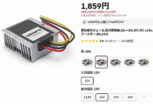 aliexpress(アリエク)で昇圧15V(実測15.40V)、最大出力15Aのコンバーターをかなり安くゲット。