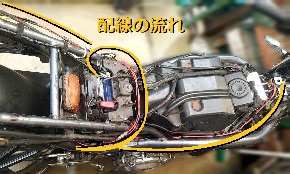 出来れば風通しのある所…、左のリアカウルの下に空間あり、ここにしよう。
