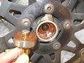 ガタ付きのあったホイールハブのベアリングを交換。プーラーを使わずアンカーボルトで。