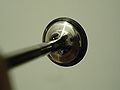 キャブのスロットルバルブのすき間。空燃比が狂う一因。スロットルコートで補修する。